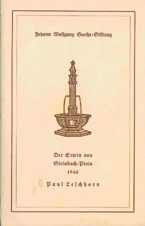 Festschrift zur Verleihung des Erwin von Steinbach Preis der Uiversiät Freiburg im Breisgau am 3. Mai 1941 Nach dem Kriege 1914/18 schuf der Künstler auch religiös figürliche Abbilder. Zunächst meisterte er die nahezu quadratmetergroße Wiedergabe des "Christus am Kreuz" nach Matthis Neithardt-Gothardts Isenheimer Schrein. 1938 wurde die seelische Kraft der flämischen Schmerzensmutter von Simon Marmion, ein Tafelbild aus dem 15. Jahrhundert, in zurückhaltender Tongebung nacherlebt. Außerdem hat Leschhorn ein oberrheinisches Werk innerer Schönheit, einen Bildausschnitt der "Maria im Rosenhag" von Martin Schongauer in farbiger Nachbildung herausgebracht. Bereits 1907 waren 30 Aquarelle auf der Reise nach Dalmatien lokaltonig entstanden und 1924 bis 1931 zog es den Maler allmählich nach dem romantischen Korsika. Dort hat er, unweit von Ajaccio, mit Wasser- und Temperafarben nahezu 300 Insellandschaften in glutvoller Pracht gemalt. Seitdem sich der Elsässer mit dem Studium von Japan- und Chinaholzschnitten befasste, wurde er ein Leidenschaftlicher Liebhaber von ostasiatischen Kunstbronzen, Porzellanen, Stickereien und Lackgegenständen. Durch sein beim Schneemalen in den Vogesen zugezogenes Leiden ist Leschhorn seit mehreren Jahren an die Werkstatt gebunden und hat sich in das Studium des östlichen Schrifttums versenkt. So ist er ein Kenner der fernöstlichen Kultur geworden und, abhold jeder Mode, entstanden seine großen China Stillleben; denn das Sagenhafte dieser sogenannten Götzenbilder ist dem Aquarellmaler wohl vertraut. Mit blauweißen Vasen, alten Bronzen und Buddahbildern, grotesken Masken und kostbaren Teppichen baut er sich seine erwogenen Tongemälde auf. Zum Eindruckvollsten dieser bedeutsamen noch wenig bekannt gewordenen Bilderfolge zählt ein rotleuchtendes "Altes Buddahbild" von 1936.